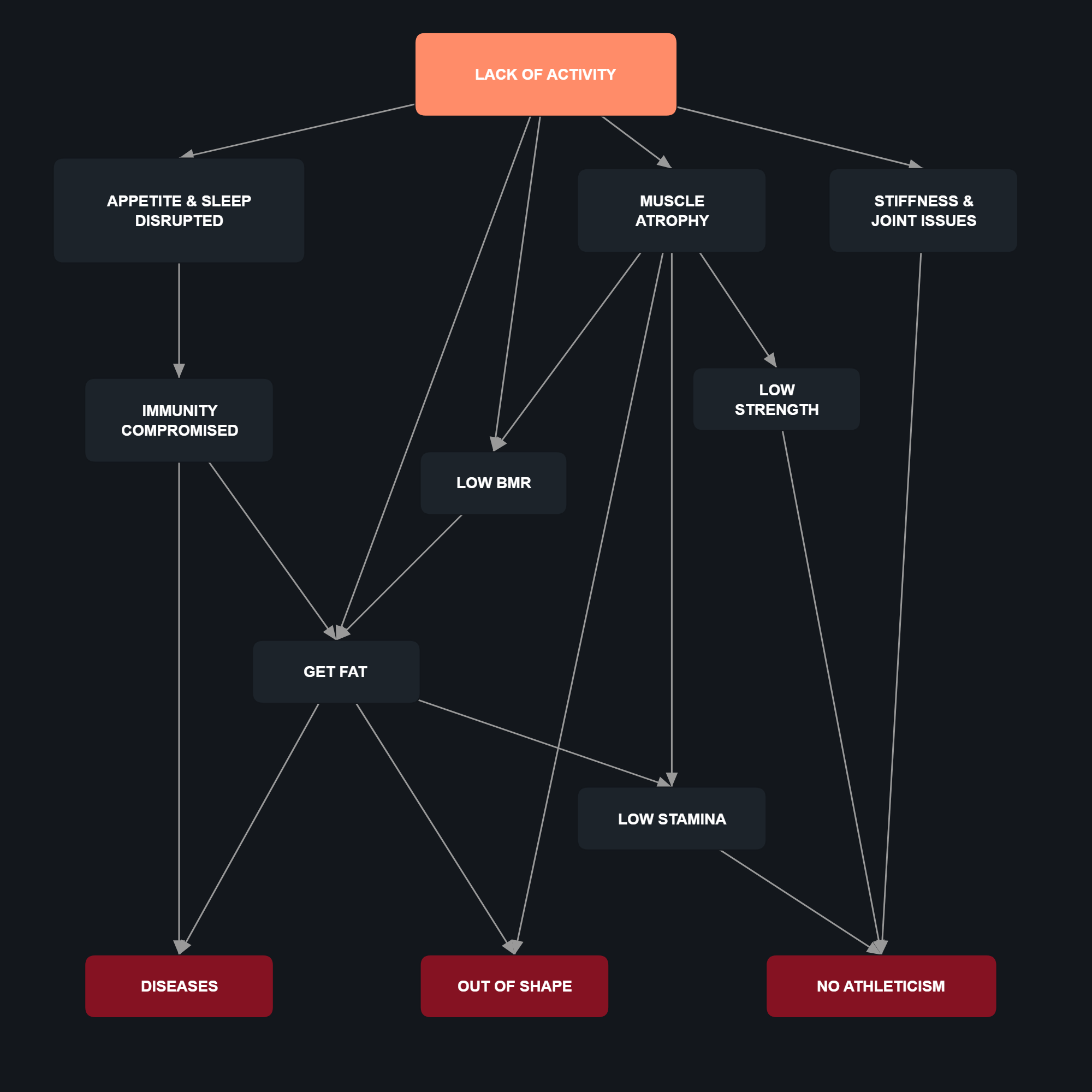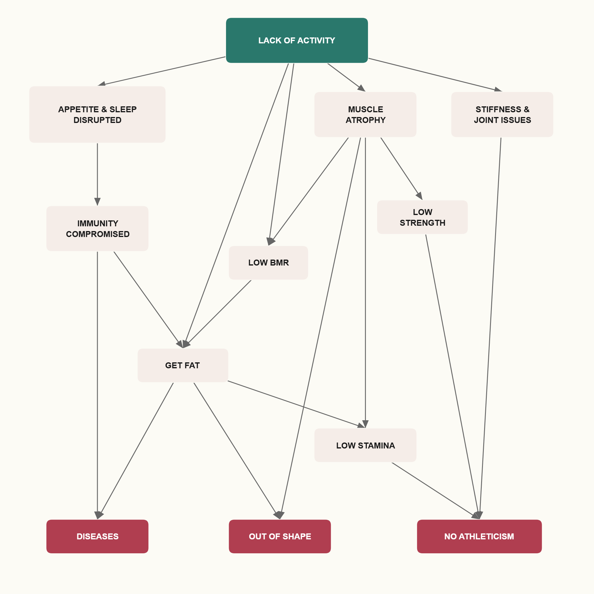 As you have seen in the flow chart above, the biggest factor when it comes to whether or not you are 'fit' is that you do something about your inactivity in the first place. A good place to start (for setting up a routine) would be an activity you are comfortable with or have previous experience with — just start doing the activity regularly (say, running).